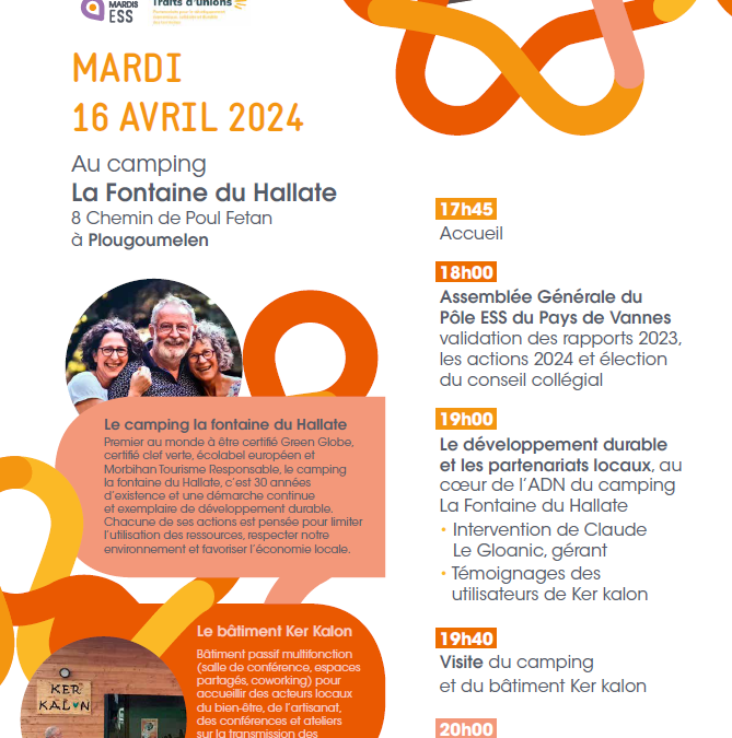 Assemblée générale pôle ESS Pays de Vannes par Mélanie | Mar 25, 2024 | Actualité Ouvert à toutes et tous sur inscription ICI Pour le covoiturage RDV sur CE LIEN